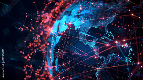 Fototapeta premium "Digital world globe, idea of worldwide network and connections on Earth,...