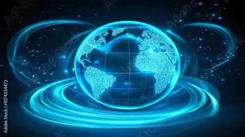 Obraz premium Digital World Globe with Blue Light Effects