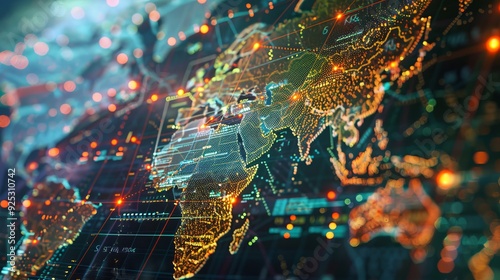 © Montaha Hossain, Obraz premium Digital World Map: Global Network and Data Visualization