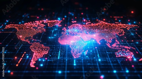 Obraz premium Digital World Map Illuminated With Glowing Nodes