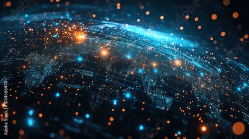 Obraz premium Digital World Map with Glowing Blue Dots Representing Global Connectivity