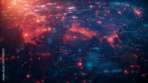 Obraz premium Digital World Map with Red Glowing Dots and Lines