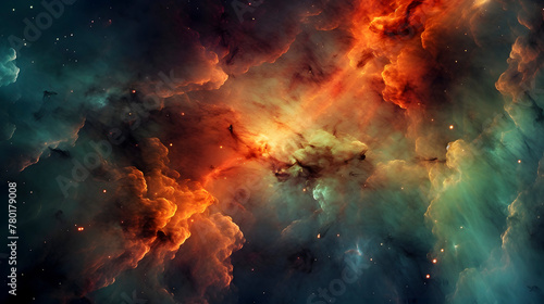 © yonshan, Fototapeta premium Digital yellow and green starry night sky abstract graphic poster web page PPT background