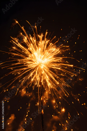 Fototapeta premium Digital yellow-gold exploding firework illustration abstract graphic poster...