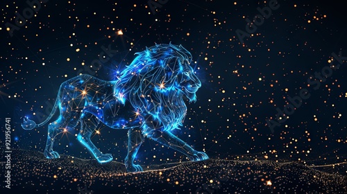 Fototapeta premium Digitally generated image of the Leo symbol with stars against a black background, representing zodiac signs, constellations, and horoscope themes.