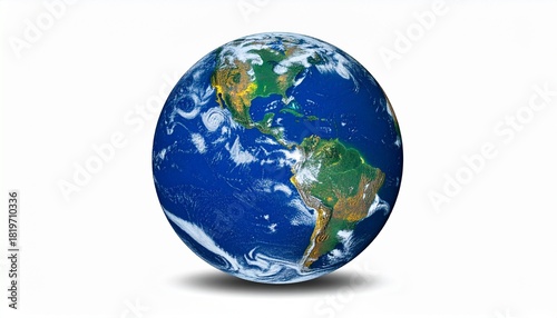 © pureart, Fototapeta premium Digitally rendered Earth centered on Africa with realistic oceans and clouds, floating above white background.