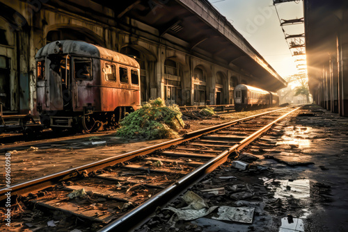 © VicenSanh, Obraz premium dilapidated abandoned train station.