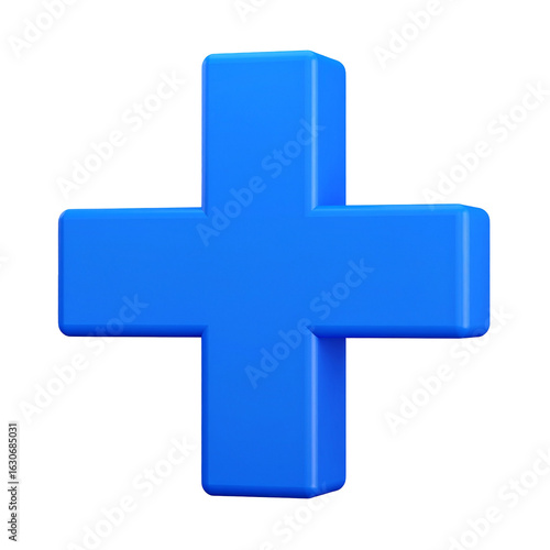 © MD, Fototapeta premium Dimensional blue plus sign rendering illustration on transparent background