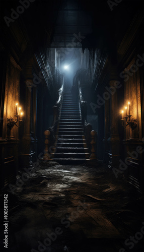 Fototapeta premium Dimly Lit Hallway in an Abandoned Mansion