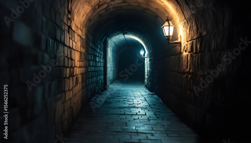 Fototapeta premium Dimly lit tunnel passageway