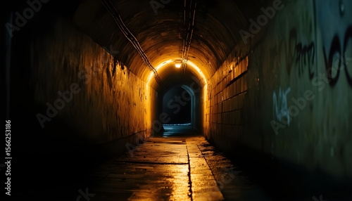 Obraz premium Dimly lit tunnel passageway