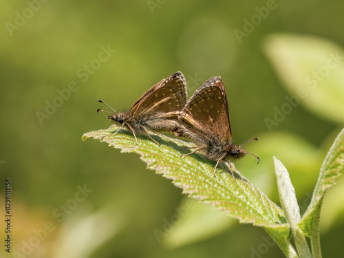 © Stephan Morris , Obraz premium Dingy Skipper Butterflies Mating on a Leaf
