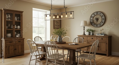 Fototapeta premium Dining Room Interior with Rustic Wooden Furniture and Classic Design