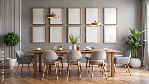 Fototapeta premium Dining room wall art frame display mockup , home decor, interior design, gallery wall, modern, elegant