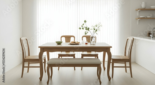© Sugiri80, Fototapeta premium Dining Table and Chairs in a Bright Interior