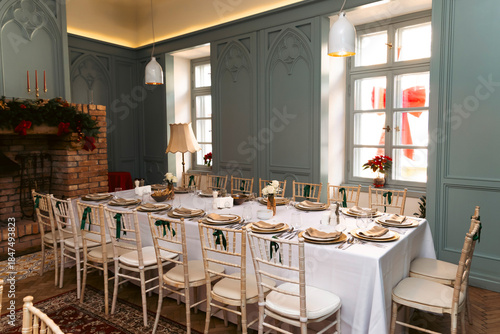 © erika8213, Fototapeta premium Dining table with beautiful setting for Christmas eve in room