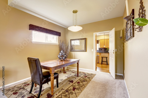 © Iriana Shiyan, Fototapeta premium Dining wooden table with leather chair