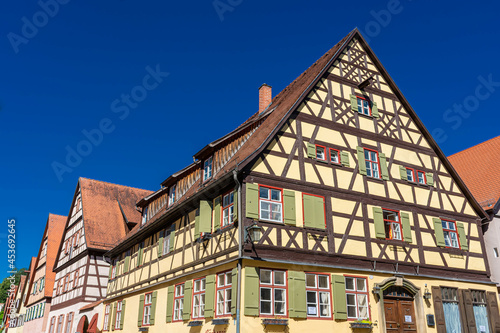 Fototapeta premium DINKELSBUHL, GERMANY, 27 JULY 2020: Colorful and ancient half-timbered houses...