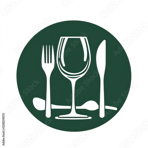 Fototapeta premium Dinnerware icons on dark green circle for restaurant, menu, and web use