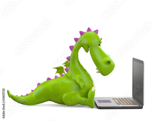 © DM7, Obraz premium dino baby green glossy dragon in laptop