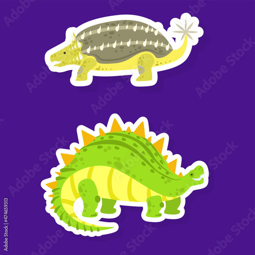 © topvectors, Fototapeta premium Dinosaur Character Sticker Isolated on Blue Background Vector Set