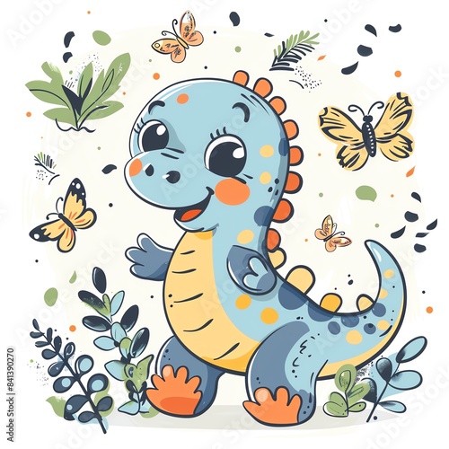 Fototapeta premium Dinosaur Chasing butterflies