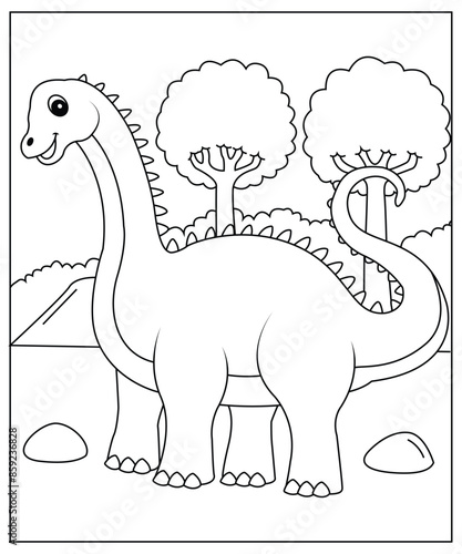 © Mehenaz, Naklejka premium Dinosaur coloring page for kids and adults