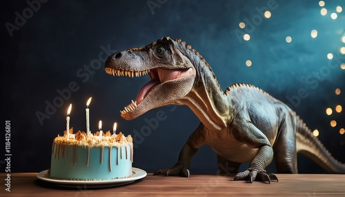 © Grover, Naklejka premium dinosaur eating a birthday cake