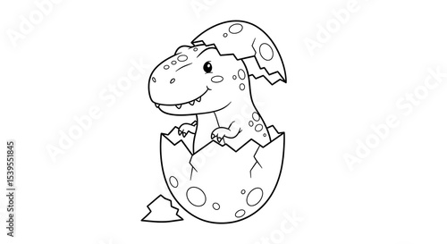 © MissBeauty, Fototapeta premium Dinosaur hatching from egg coloring page cute t rex outline drawing vector illustration on transparent background