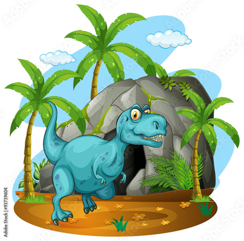 Naklejka premium Dinosaur in front of the cave