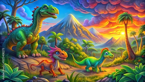 © Marwa, Obraz premium dinosaur in the grass