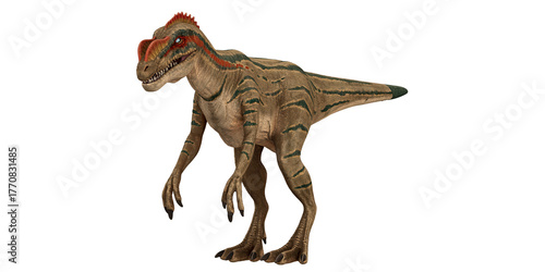 © Ilie, Naklejka premium Dinosaur model with vibrant striped pattern