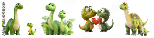 Obraz premium dinosaur on Transparent Background concept. A group of colorful cartoon dinosaurs in various poses, showcasing friendly interactions and emotions.