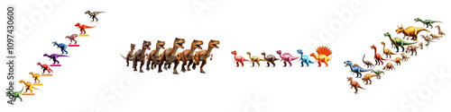 © Prim2513, Naklejka premium dinosaur on Transparent Background concept. A vibrant collection of miniature figures arranged in a playful manner, showcasing various animals and whimsical characters.