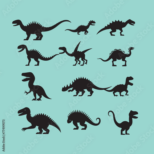© 7COLORSbd, Naklejka premium Dinosaur silhouette vector set