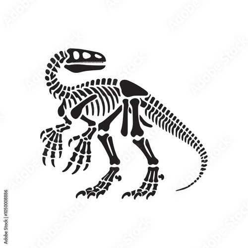 © Shineoxstock, Fototapeta premium Dinosaur Skeleton vector illustration in black and white - Dinosaur Skull Clipart Design