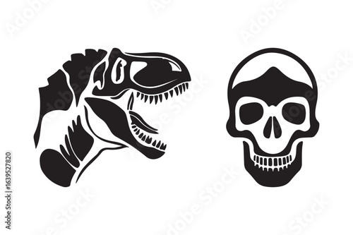 Fototapeta premium Dinosaur skull and human skull silhouette tattoo design