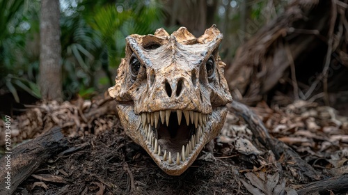 Fototapeta premium Dinosaur Skull in Forest Setting