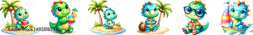 © Zz, Naklejka premium Dinosaur summer cute for kids, watercolor illustration.