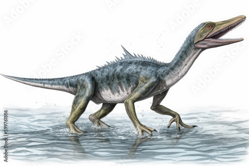 © The 2R Artificiality, Naklejka premium dinosaur wading through a body of water Generative AI
