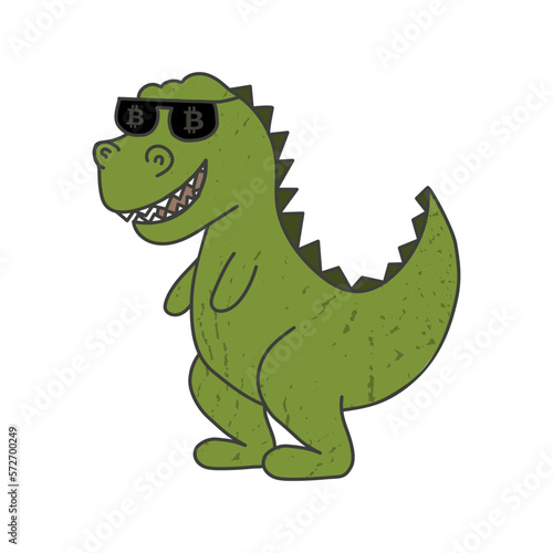 © Алеся, Fototapeta premium Dinosaur with glasses. Bitcoin. Cool dino. Vector illustration. Character. cartoon