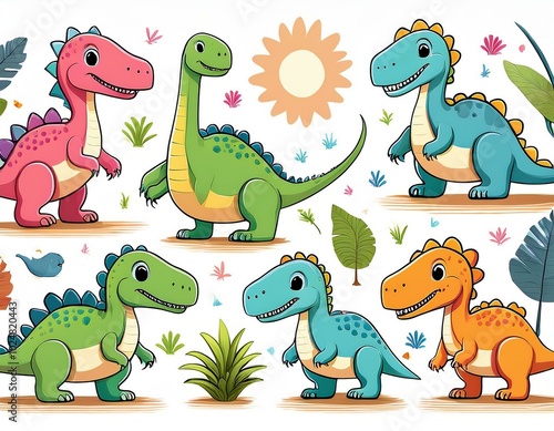 © Cynthia, Obraz premium dinosaurs set for kids bedroom isolated on white