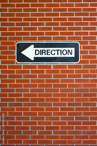© Pierre, Fototapeta premium Direction sign on brick wall.