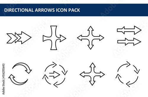© Flatart, Fototapeta premium Directional arrows icons in various forms displayed on a white background. Collection of simple, black line directional arrows for design elements or website use.