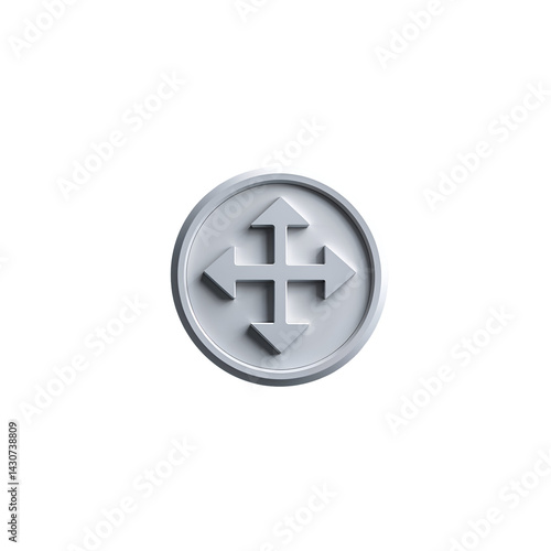 © Yasir, Fototapeta premium Directional button with circular design and cross shape, gray plastic d-pad from video game controller isolated on white background in product photography style