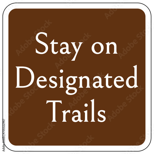 © middlenoodle, Obraz premium Directional hiking trail safety sign stay on designated trails