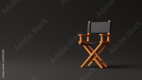 © Andrii, Obraz premium Director chair on black background. Movie industry concept. Cinema production design concept. 3d rendering illustration