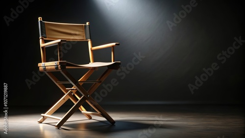 Obraz premium Director's chair on a black background, folding chair, scene, render,mock up,...
