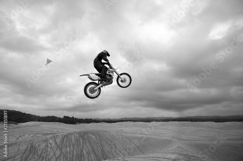 © Raven, Obraz premium Dirt bike jumping sand dunes - High up