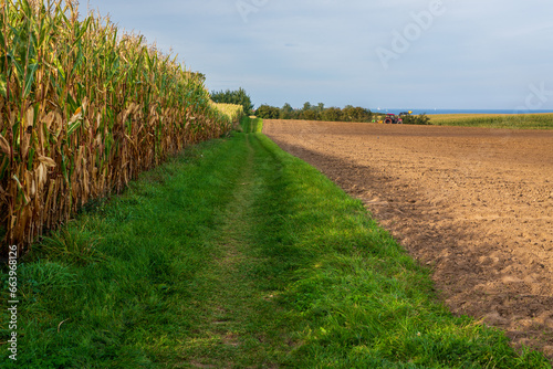 © Bernhard, Fototapeta premium Dirt path along a corn field.